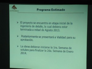 La fecha estipulada para el inicio de los trabajos es la primera semana de octubre para finalizar la obra la segunda semana de enero de 2014.