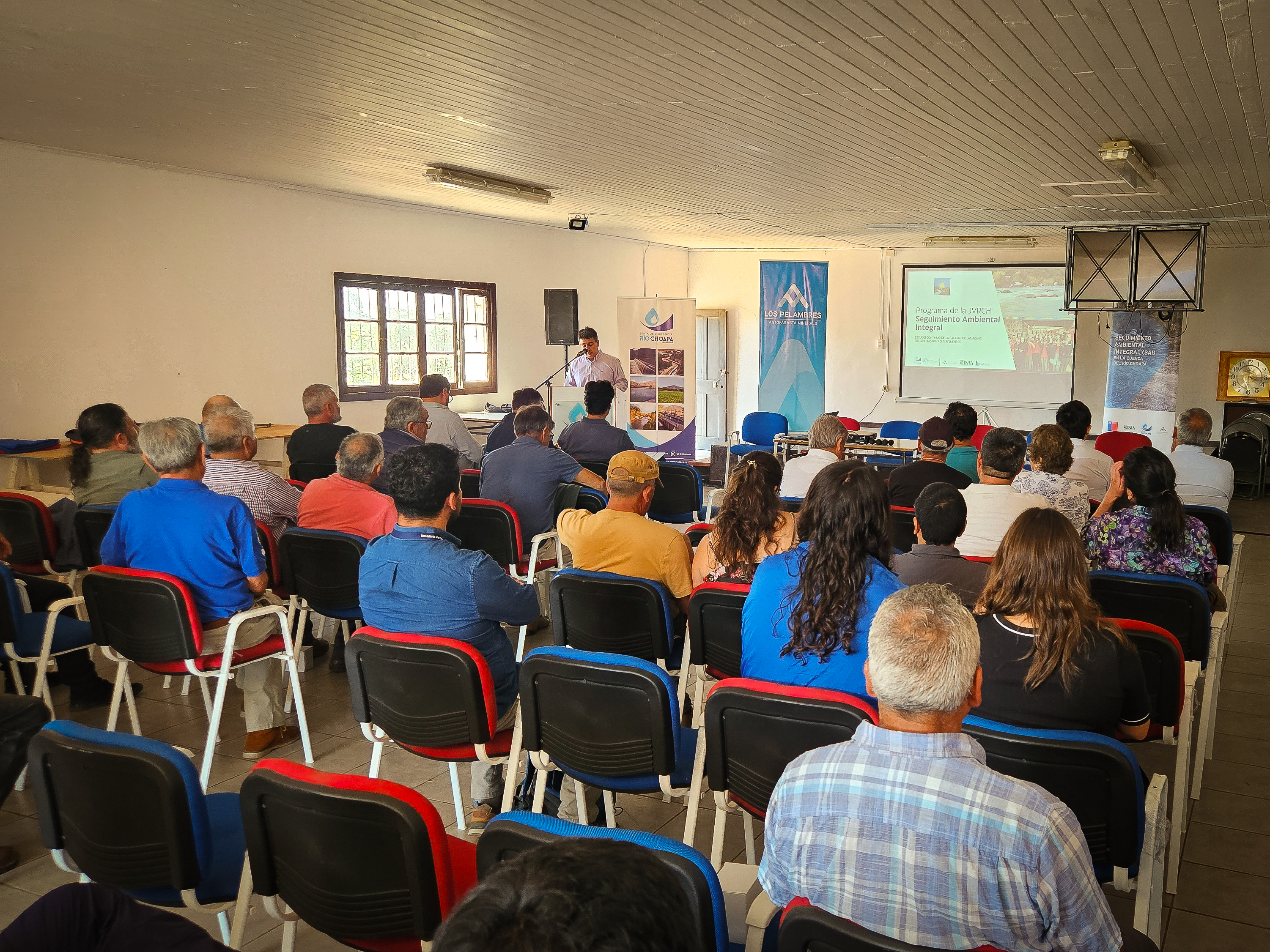 Diego Alfaro, Gerente y Juez de Río de la JVRCH, explicó que “nuestro equipo organizó este seminario muy importante destinado a informar a la localidad de Huentelauquén sobre algunos estudios que hemos generado en este sector. Uno de ellos es el Programa de Seguimiento Ambiental Integral, que, si bien se ejecuta en toda la cuenca, tiene puntos específicos en Huentelauquén, y, por otro lado, a mostrar un estudio que realizamos en 2024 y 2025 en el Humedal Las Salinas de Huentelauquén. Ambas iniciativas son una potente herramienta técnica y de control de las aguas y también para la comunidad y, en este caso, para compartir información con usuarios, APRs y la autoridad”.